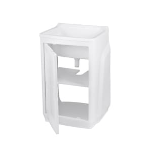 Gabinete plástico com tanque feito em polipropileno com aditivo UV, compacto, design moderno e na cor branca.