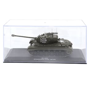 Especificações Técnicas: Modelo: M26 Pershing – 2ª Divisão Blindada, Alemanha 1945 Escala: 1/43 Material: Estrutura principal: Metal fundido (diecast) Detalhes: Plástico ABS de alta precisão Características Móveis: Torre giratória e canhão ajustável em elevação Pintura: Verde-oliva militar com marcações táticas históricas da 2ª Divisão Blindada dos EUA. Dimensões Aproximadas: Comprimento: 15 cm Largura: 6,5 cm Altura: 5,5 cm Peso: Cerca de 270 g Ean: 0687312231898