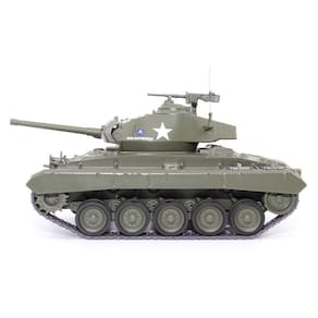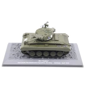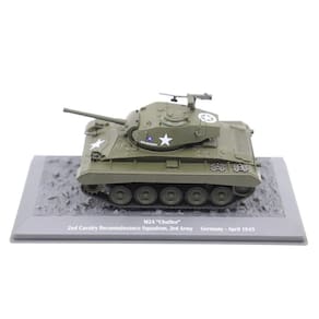O M24 Chaffee Light Tank foi um tanque leve americano utilizado na Segunda Guerra Mundial e na Guerra da Coreia. Ele tinha uma torre giratória, um canhão de 75 mm e uma velocidade máxima de 56 km/h. O M24 Chaffee Light Tank - 2nd Cavalry Reconnaissance Squadron, Germany, 1945 (1:43 Scale) é uma miniatura detalhada desse veículo histórico