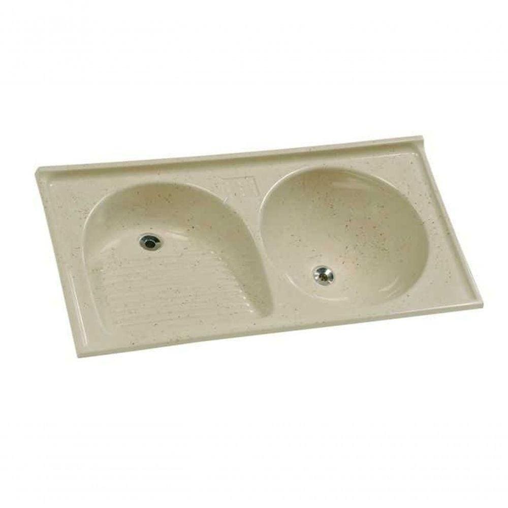 Tanque Duplo de Fibra 100 x 50cm Branco Granitado - FortMármore
