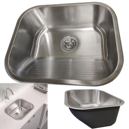Feito em aço inox 201, com chapa de 0,8 milímetros de espessura é resistente aos agentes químicos. Possui manta emborrachada para diminuir o ruído da água.