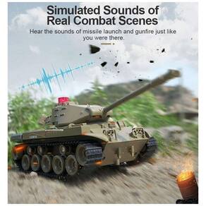 Além disso, este tanque é multifuncional e pode simular os sons de batalhas de tanques, como o som de canhões, metralhadoras e sons de motores. Através do controle remoto, ele pode simular para frente, para trás, giro para a esquerda, rotação da torre de 270 graus e outras ações, permitindo que seu filho simule exercícios militares e aventuras de guerra.