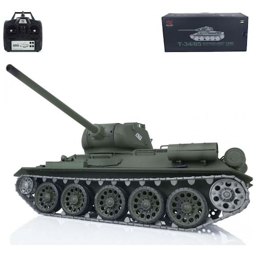 O sistema de combate infravermelho suporta muitos jogadores para combater em uma guerra de tanques. Com aparência em escala do tanque real, direção pivô, torre que gira quase 340 graus e barril de controle para cima e para baixo quase 30 graus, além de luzes de tanque emulacionais de LED. O sistema de som da placa-mãe 7.0 oferece 2 sons para opção, cada ação atua com som mecânico de tanque real. O disparo de pellets BB de 6mm tem ação legal de recuo do casco e efeito sonoro de disparo, com alcance de tiro de 20m. A versão de plástico vem com suspensão de roda de metal. O fumo ocioso é como um tanque real do motor, quando o tanque funciona rápido, a fumaça gradualmente se torna mais, mas você precisa deixar cair líquido no tanque cada vez, deixe cair apenas uma gota ou então quebre. Observe que talvez não possamos enviar líquido para alguns países. O sistema de controle de rádio de 2,4 GHz suporta muitos tanques semelhantes combatendo juntos sem intervenção de rádio.