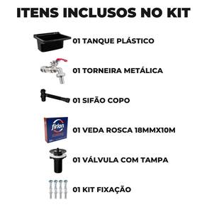 Tanque plástico 22l para lavanderia preto astra O uso do tanque de lavar roupa é ideal para lavagem de roupas delicadas, como roupas íntimas, de bebês e peças que requerem atenção especial, pois permite um controle mais preciso da temperatura e movimento das roupas durante a lavagem. Também é uma opção prática para pré-lavagem de roupas muito sujas antes de colocá-las em uma máquina de lavar. O tanque de lavar roupa é uma opção acessível e prática para quem deseja lavar roupas à mão sem abrir do conforto e da praticidade de um equipamento projeto para essa finalidade. Especificações técnicas Material: polipropileno Dimensões: 47,2 x 42,8 x 26,7cm Capacidade: volume útil/total 13 / 22 litros Locais sugeridos: lavanderias Acabamento: brilhante Marca: astra Cor: preto Sifão sanfonado universal com copo 49cm preto astra Esse sifão é um componente essencial para encanamento, adaptável a diversas saídas e tubulações, evitando bloqueios e vazamentos. Suporta temperaturas de até 90c, sendo compatível com tubos de 38, 40, 48 e 50mm. Fabricado em plástico abs resistente, e é projetado para corrigir desalinhamentos entre a cuba e a tubulação. Torneira de metal para jardim quintal tanque com bico 1/2 fertak Essa torneira é construída em aço resistente à corrosão, ideal para uso externo em jardins, quintais e tanques. Seu bico de 1/2 permite um controle preciso do fluxo de água, facilitando sua adaptação às necessidades. Com um design ergonômico, é fácil de operar, proporcionando conforto e praticidade ao usuário. O kit segue com todos os itens para montagem e pronto para uso após a instalação - 90 dias para o tanque - 90 dias para o sifão - 30 dias para a torneira Itens inclusos 01 tanque 01 sifão 01 torneira de metal 1/2 01 rolo de fita veda rosca 18mm x 10m 01 válvula com tampa 06 buchas s10 04 parafusos 3,5 x 55mm 02 parafusos 3,5 x 75mm 02 espaçadores 02 arruelas Marca: Não Informado Ean: 7894141409890