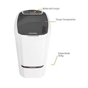 Na cor Branco, seu design moderno combina com qualquer ambiente de lavanderia. O LCS10 oferece lavagem eficiente com baixo consumo de energia e ainda conta com filtro de fiapos, timer com até 28 minutos e um sistema de lavagem por turbilhonamento que garante uma limpeza profunda sem danificar os tecidos.
