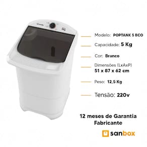-Modelo: Lavadora POPTANK 5 BCO 220v