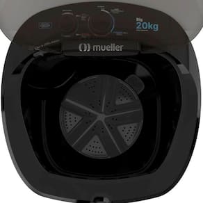 Características: Marca: Mueller Modelo: 6100006 Capacidade de lavagem: 20 kg Programas: 4 programas Abertura da tampa: Superior Dispenser para alvejante: Não Dispenser para sabão em pó: Sim Dispenser para amaciante: Sim Enxague: Não Molho: Sim Filtro de fiapos: Sim Eficiência energética: A Potência: 110V: 380 W |: 395 W
