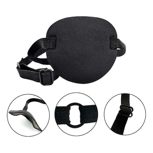 O Oclusor Tampão Estrabismo Ambliopia Tapa Olho Pirata Óculo é preto e feito de lycra e esponja. Sua superfície macia proporciona conforto e relaxamento. Além disso, ele conta com camadas de proteção contra a luz, garantindo que não haja vazamento de luz e tornando-o mais eficaz no tratamento da ambliopia.