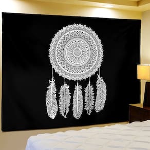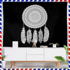 Material: pele de pêssego Tamanho: 150 cm × 130 cm Peso: 195g Design exclusivo do Dreamcatcher — apresenta um fundo preto impressionante com uma mandala branca detalhada e um padrão de penas, adicionando um toque boêmio moderno ao seu espaço. Tecido de pele de pêssego de alta qualidade — Feito de material macio e durável de veludo de pele de pêssego, leve, suave e resistente a rugas para uma beleza duradoura. Decoração artística de parede versátil — perfeita para uso como tapeçaria, tapeçaria, pano de fundo, colcha de cama, capa de mesa ou peça de decoração de dormitório, criando uma atmosfera aconchegante e elegante. Tamanho decorativo generoso — mede 150 x 130 cm (59 x 51 polegadas), ideal para grandes coberturas de paredes, aprimorando quartos, salas de estar e dormitórios com um toque artístico. 🧵 Fácil de limpar e manter — Lavável à mão ou à máquina em água fria, as cores permanecem vibrantes após a lavagem, tecido de secagem rápida para cuidados convenientes.