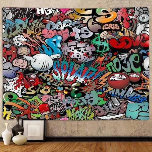 Material: pele de pêssego Tamanho: 150 cm × 130 cm Peso: 260 g Design vibrante de grafite — apresenta uma colagem ousada de arte de rua com gráficos coloridos em estilo cartoon, perfeita para adicionar energia urbana a qualquer espaço. Decoração artística de parede versátil — Ideal como tapeçaria para tapeçaria para quarto, dormitório, sala de estar, estúdio ou espaço de trabalho criativo, dando às paredes uma atmosfera de hip hop. Impressão de alta qualidade — A tecnologia de impressão avançada garante cores vivas, detalhes nítidos e um apelo visual duradouro que não desbota facilmente. 🧵 Tecido durável — Feito de poliéster de pele de pêssego, macio, leve, resistente a rugas e fácil de dobrar ou pendurar para decoração de longo prazo. Tamanho perfeito — mede 150 x 130 cm, adequado como tapeçaria de parede, capa de fundo ou cenário fotográfico artístico para uma decoração moderna e jovem.