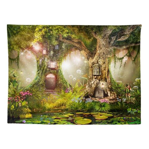 Material: pelúcia curta Tamanho: 150 cm × 130 cm Peso: 292 g Magical Fairy Forest Scene — Apresenta uma fantástica casa na árvore com lanternas brilhantes, flores exuberantes, lago com lírios e figuras de fadas, criando uma atmosfera de parede extravagante e onírica. Tapeçaria de parede multiuso — ideal como decoração artística de parede, colcha, cortina de teto, manta de sofá ou cenário fotográfico para quartos, salas de estar ou dormitórios. Material macio de pelúcia curta — Feito de tecido de pelúcia curta de alta qualidade, oferecendo uma textura suave, estampa vibrante e qualidade durável que aumenta o conforto e o apelo visual. Tamanho perfeito 150 x 130 cm — Cobre lindamente os espaços de parede padrão, servindo como uma peça central que traz fantasia e charme natural a qualquer ambiente. Fácil suspensão e manutenção — O design leve facilita a suspensão com ganchos ou clipes; fácil de limpar e resistente ao desbotamento para uso decorativo duradouro.