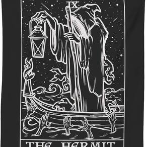 Material: pele de pêssego Tamanho: 150 cm × 130 cm Peso: 260 g Design de tarô místico — apresenta a ilustração da carta de tarô Hermit com lanterna, manto e imagens simbólicas, perfeita para amantes da arte gótica e espiritual. Tecido premium — Feito de material macio de pele de pêssego, leve, durável e confortável, com impressão nítida em preto e branco para cores duradouras. Decoração artística de parede versátil — funciona como tapeçaria, tapeçaria de parede, pano de fundo de meditação ou decoração estética para quarto, sala de estar ou dormitório. Fácil de usar e manter — Pode ser pendurado facilmente com pinos ou fitas adesivas; dobra-se perfeitamente para armazenamento e é lavável à máquina para facilitar o cuidado. Tamanho grande — mede 150 x 130 cm (59 x 51 polegadas), adequado como arte de parede marcante para aprimorar interiores góticos, bruxos ou boho.