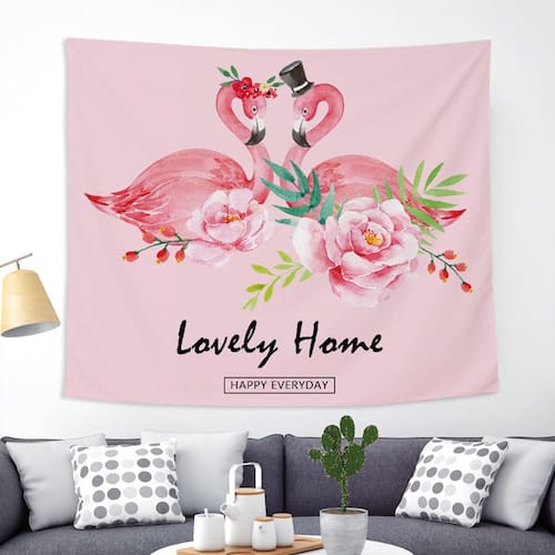 Material: fibra de poliéster (poliéster) Tamanho: 150 cm × 130 cm Peso: 215 gRomantic Flamingo Design: apresenta dois flamingos rosa com detalhes florais em um fundo rosa suave, criando um estilo decorativo doce e charmoso. Tecido de poliéster de alta qualidade: feito de fibra de poliéster leve e durável com impressão transparente e resistente ao desbotamento para cores e detalhes duradouros. Decoração artística de parede versátil: perfeita para uso como tapeçaria, tapeçaria ou pano de fundo decorativo para quartos, dormitórios, salas de estar ou estúdios aconchegantes. Fácil instalação e manutenção: leve e resistente a rugas; fácil de pendurar com ganchos ou pregos. Lavável à máquina em um ciclo suave e de secagem rápida. Tamanho decorativo ideal: mede 150x130cm, adequado para áreas de parede médias, adicionando um toque romântico e divertido à decoração da sua casa.