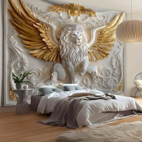 Material: pele de pêssego Tamanho: 150 cm × 130 cm Peso: 260 g 🦁 Design majestoso de leão alado — apresenta um poderoso leão com asas douradas colocadas sobre um fundo ornamentado, simbolizando força, coragem e luxo. Decoração artística de parede elegante — A impressão detalhada com efeitos 3D com detalhes dourados adiciona um toque sofisticado e dramático a quartos, salas de estar, áreas de jantar ou escritórios. Uso versátil — Pode ser pendurado como tapeçaria, tapeçaria de parede, pano de fundo, colcha, cortina ou peça decorativa criativa para interiores modernos e clássicos. Tela de tamanho generoso — mede 150 x 130 cm (59 x 51 polegadas), tornando-a uma peça de referência ideal para transformar paredes em arte ousada e atraente. Tecido durável e fácil de cuidar — Feito de poliéster de pele de pêssego, leve, resistente a rugas, dobrável e lavável à máquina para conveniência e uso a longo prazo.