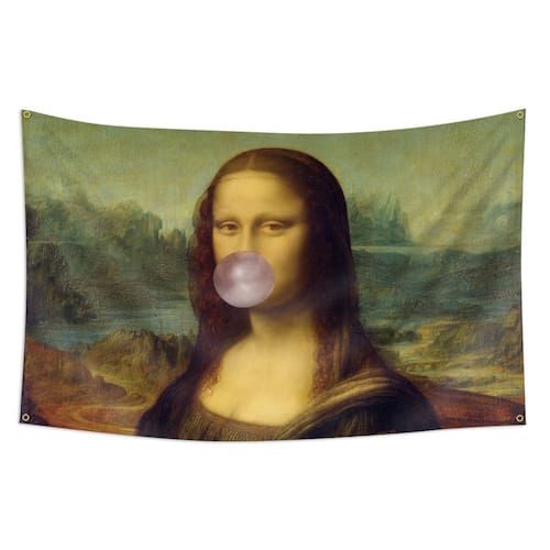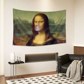 Tamanho: 100 x 150 cm Peso: 110 g Material: poliéster Embalagem: 1 x tapeçaria Esta tapeçaria apresenta um toque divertido da pintura clássica de Mona Lisa, com a figura icônica soprando um chiclete, adicionando um toque divertido e moderno à arte tradicional para a decoração de sua casa ou escritório. Feita de tecido 100% poliéster, esta tapeçaria é macia, durável e se encaixa perfeitamente na parede, oferecendo uma peça elegante e peculiar, perfeita para quartos, salas de estar ou estúdios de arte. A impressão em alta definição garante que as cores vibrantes e os detalhes permaneçam nítidos e vivos, dando vida a essa obra de arte contemporânea. Um ótimo começo de conversa e uma peça de decoração exclusiva. Ideal para amantes da arte e da decoração peculiar, esta tapeçaria adiciona um toque moderno às obras de arte clássicas. Também é um presente perfeito para quem gosta de combinar cultura com humor e criatividade. Fácil de pendurar com alfinetes ou tachas decorativas, esta tapeçaria é simples de manter. Lave à mão com cuidado ou a seco, e você pode passar a ferro em fogo baixo para mantê-la fresca e sem rugas.