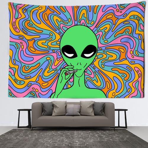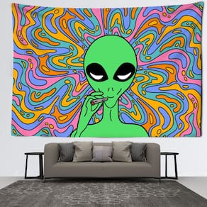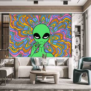 Material: pele de pêssego Tamanho: 150 cm × 130 cm Peso: 260 g Design Trippy Alien: apresenta um alienígena verde vibrante com redemoinhos psicodélicos ousados em rosa, laranja, azul e amarelo, perfeito para espaços hippies e de inspiração retrô. Tecido de alta qualidade: feito de tecido macio de pele de pêssego, leve e durável, com impressão vívida de alta definição que não desbota após a lavagem. Decoração artística de parede versátil: ideal para quarto, sala de estar, dormitório ou área de estar, adicionando uma declaração ousada e uma vibração estética. Fácil de pendurar e manter: o material leve permite pendurar facilmente com ganchos ou clipes; lavável à máquina ou à mão para facilitar o cuidado. Tamanho decorativo generoso: a tapeçaria de 150x130cm oferece excelente cobertura, transformando qualquer parede lisa em uma tela colorida e atraente.
