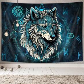 Material: fibra de poliéster (poliéster) Tamanho: 150 cm × 130 cm Peso: 260 g Tapeçaria exclusiva de inspiração viking com um lobo azul detalhado com símbolos rúnicos nórdicos, perfeita para adicionar uma atmosfera mística. Feito de tecido de poliéster de alta qualidade com impressão vívida de alta definição, leve, durável e fácil de pendurar ou dobrar. Uso multiuso como tapeçaria, tapeçaria de parede, decoração de arte de parede, pano de fundo de meditação, cortina ou colcha. Adequado para quarto, sala de estar, dormitório ou espaço de meditação, trazendo uma misteriosa estética de fantasia nórdica. Mede 150x130cm, lavável, reutilizável e simples de manter para uma decoração duradoura.
