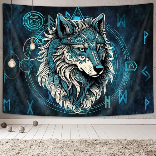Tapeçaria para pendurar na parede Viking Wolf Nordic Mythology 150x130cm
