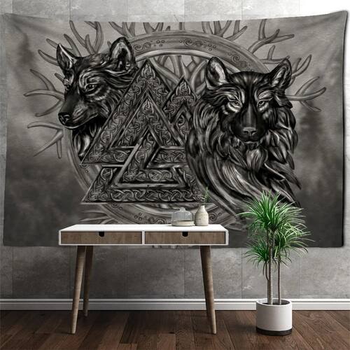 Material: fibra química Tamanho: 150 cm × 130 cm Peso: 200 g Design de mitologia nórdica: apresenta duas ilustrações detalhadas de lobo com nós de Valknut e símbolos inspirados em runas, perfeitas para criar uma atmosfera mística e gótica. Tecido de poliéster durável: feito de fibra sintética de qualidade, macio, leve e resistente a rugas, ideal para decoração de casa a longo prazo. Tamanho perfeito para decoração: medindo 150 x 130 cm, adequado para quartos, salas de estar, dormitórios, estúdios ou como um fundo fotográfico impressionante. Fácil de instalar: as bordas reforçadas permitem pendurar facilmente usando pregos, pinos ou ganchos, oferecendo opções de exibição flexíveis. Decoração artística de parede versátil: funciona bem em interiores góticos, nórdicos ou boêmios e aprimora salas temáticas, áreas de meditação ou cenários artísticos.