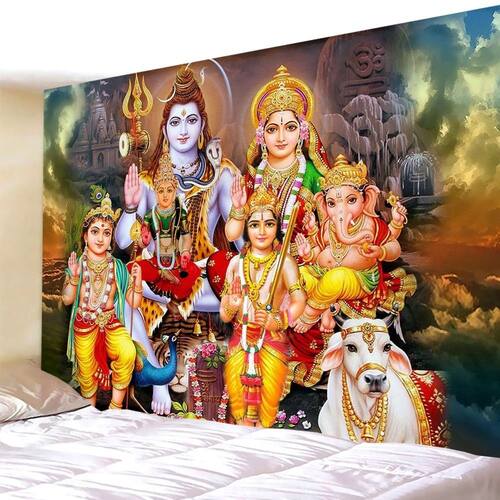 Material: fibra química Tamanho: 150 cm × 130 cm Peso: 200 g Design sagrado hindu — apresenta uma impressão vibrante de divindades hindus com elementos tradicionais detalhados, trazendo energia cultural e espiritual para o seu espaço. Arte brilhante e detalhada — A impressão digital de alta definição garante cores vivas e padrões complexos, tornando essa tapeçaria um ponto focal atraente. Decoração de arte de parede multifuncional — Pode ser usada como tapeçaria, tapeçaria, pano de fundo, cortina, colcha ou arte decorativa de parede para casas, templos e áreas de meditação. Display de tamanho generoso — medindo 150 x 130 cm (59 x 51 polegadas), perfeito para cobrir áreas de parede e aprimorar quartos, salas de estar ou salas de oração. Tecido durável e fácil de cuidar — Feito de poliéster leve, resistente a rugas, dobrável e lavável à máquina, tornando-o conveniente de limpar e duradouro.