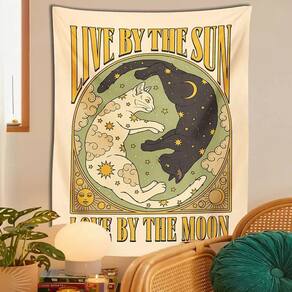 Embalagem: 1 x Tapeçaria Material: poliéster Tamanho: 100X150 cm Peso: 110g Esta tapeçaria “Live by the Sun, Love by the Moon” traz um toque sereno e místico ao seu quarto, apresentando um gato branco e preto em um design celestial com estrelas, nuvens e os símbolos do sol e da lua. Feita de tecido 100% poliéster, esta tapeçaria é macia, durável e não agride a pele. Tem uma cortina de alta qualidade quando pendurada na parede, criando uma atmosfera aconchegante e relaxante em seu quarto ou sala de estar. A tapeçaria apresenta tecnologia de impressão de alta definição para garantir que as cores vibrantes e os detalhes intrincados permaneçam vivos ao longo do tempo. O design celestial adiciona beleza e energia espiritual ao seu espaço. Leve e sem moldura, esta tapeçaria é fácil de pendurar usando tachas decorativas ou alfinetes. Também é fácil de dobrar, guardar e cuidar, o que o torna uma adição conveniente e prática à decoração da sua casa. Um presente perfeito para quem gosta de astrologia, gatos ou decoração espiritual. Esta tapeçaria adiciona uma atmosfera pacífica e mágica a qualquer ambiente, tornando-a um presente atencioso para a família, amigos ou para você mesmo.