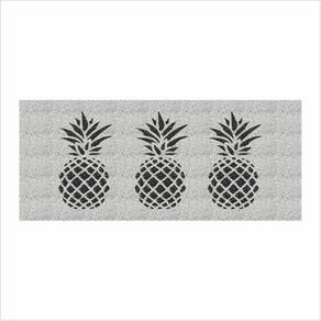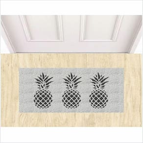 Capacho Vinil com fibras entrelaçadas e costado emborrachado com arte pinta em tinta vinílica especial.