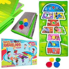 Brinquedo Jogo Amarelinha Tapete Térmico de bichinhos Quem nunca pulou amarelinha na vida. Uma brincadeira que passa de geração para geração. Seu pequeno viverá isso com altas brincadeiras. Um jogo de amarelinha completo com 4 fichas, numeral personalizado de bichinhos, contando ainda com uma composição de qualidade dos tapetes antitérmicos. A brincadeira da amarelinha estimula a agilidade e a coordenação da criança. Brinquedo em borracha sintética colorida, lavável, não contundente e atóxica. Pode brincar dentro e fora de casa Peças: 1 Tapete Amarelinha, 4 Fichas Regras do Brinquedo Jogo Amarelinha Tapete Termico EVA de bichinhos Cada um tem uma ficha. Os jogadores se revezam no espaço terra e jogam sua ficha no espaço 1. Se você acertar o lançamento, poderá iniciar o percurso. Caso contrário, deve ceder para o proximo jogador. Quando alguem acertar na casa 1, deve pular por cima com uma perna só para as próximas casas. Nos espaços duplos (4-5 e 7-8), o jogador deve pular nos dois Pode brincar dentro e fora de casa.