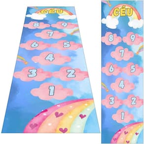 Tapete Amarelinha Infantil Ilustrado Criança Lona Titulo Amarelinha Nuvens