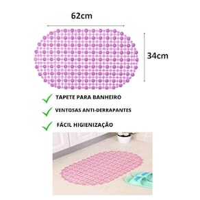 - Bonito, prático, seguro e confortável; - Possui ventosas que aderem ao piso; - Superfície com textura super antiderrapante mesmo com espuma nos pés; - Fabricado em PVC.