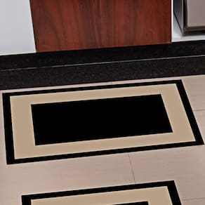 Os tapetes de cozinha da linha Decore da Kacyumara possuem superfície produzida em 100% poliamida e base 100% látex antiderrapante. Além de oferecer beleza, praticidade e segurança, conta também com diversas modelos de tapetes para decorar sua cozinha ou copa de forma divertida e colorida. Milenium mescla tom de fend com fundo preto. Perfeito para combinar beleza, conforto e segurança. Foto meramente ilustrativa.