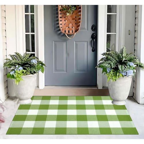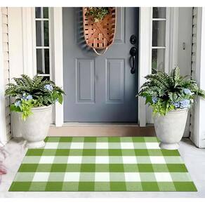 KIhipIoe Tapete xadrez Buffalo (verde e branco, 70 x 109 cm) - Tapete xadrez Buffalo
