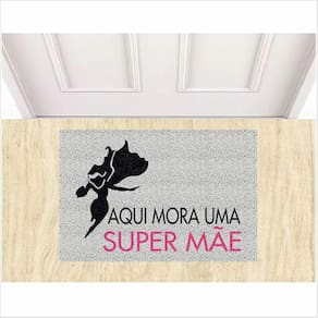 Tapete Aqui Mora Uma Super Mãe 60X40 Cm Antiderrapante.