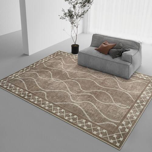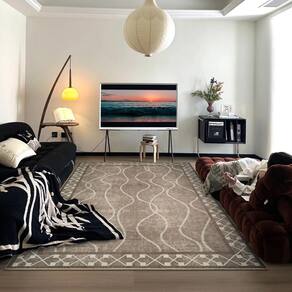 O tapete com bordas vintage moderno apresenta um esquema de cores clássico, criando uma aparência geral que é perpetuamente elegante e com textura distinta. Feito de materiais de primeira qualidade, este tapete lavável não é apenas resistente, mas também extremamente conveniente de limpar. Com sua estrutura baixa, serve como uma seleção perfeita para famílias com animais de estimação e crianças, permitindo que eles se envolvam em atividades de brincar e desenhar sem restrições.