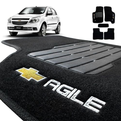 Tapete automotivo agile 2012 forração detalhes do produto jogo de tapete carpete somente forração preto com grafia logo bordado impermeável 5 peças o jogo de tapete carpete produzido pela scar acessorios possui um design perfeito para o interior do veiculo, ele possui coloração preta, grafia bordada com a logo do veículo e acabamento lateral bordado em