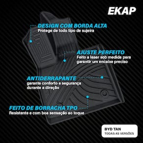Especificações: - Marca: Ekap - Indicado para o veículo: Tan; - Versões aplicáveis: Todas as versões; - Material: borracha TPO flexível e resistente; - Formato: bandeja com bordas altas; - Resistência: à água, poeira, lama e produtos químicos leves; - Instalação: acoplamento no assoalho sem necessidade de ferramentas;