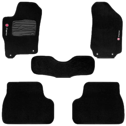 o jogo de tapete carpete produzido tapecars possui um design perfeito para o interior, ele possui coloração preta, grafia bordada com a logo do veículo e acabamento lateral bordado