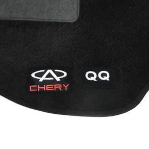 Tapete automotivo Chery QQ Carpete Luxo Jogo de tapete linha Luxo carpete com espessura de 11mm na cor preta com base antiderrapante em pvc pinado. Bordado com a grafia e nome, lavável. Jogo com 4 peças.
