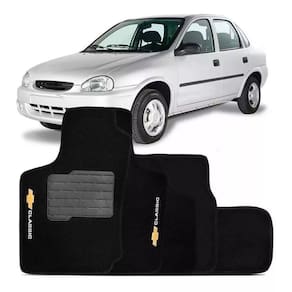 Tapete automotivo Corsa Classic 2005 forração Detalhes do Produto Jogo de Tapete Carpete somente forração Preto com Grafia Logo Bordado Impermeável 5 Peças O Jogo de Tapete Carpete produzido pela Scar Acessorios possui um design perfeito para o interior do veiculo, ele possui coloração preta, grafia bordada com a logo do veículo e acabamento lateral bordado em Este jogo é composto por 1 peça de alta qualidade, sendo as peças do passageiro e do motoristas dotadas na parte traseira para garantir a fixação deles. Para garantir a segurança o motorista contará com uma peça que possui pisante em PVC, o que evita escorregões. Cor Disponível: Preto Especificação Técnica: Fabricado em Polipropileno Carpete em Poliéster Grafia Igual da Montadora Somente forração, linha econômica, sem base pvc Pisante em PVC no Tapete do Motorista Proteção Anti Chamas Tapete Impermeável e Lavável Bordado Lateral Fixação dos Tapetes do Motorista e Passageiro com tiras aderentes Encaixe Sob Medida Jogo com 5 Peças Importante: de 3 Meses. Valor do Jogo. Não nos responsabilizamos pelo mau uso do produto. Marca: Não Informado