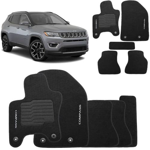 Tapete Automotivo Jeep Compass Carpete Base Pinada Jogo de tapete linha elithe carpete com espessura de 5mm na cor preta com base antiderrapante em pvc pinado. Bordado com a grafia e nome, lavável. Jogo com 5 peças. O jogo de tapete linha elithe carpete produzido pela Tapecars, possui um design exclusivo e com acabamento perfeito no seu carro, vem com acabamento nas laterais na cor preta, e com grafia bordada em 3D nos 02 tapetes dianteiros e com tiras aderentes costurado nas duas peças dianteiras para sua maior segurança e melhor fixação do produto. Esse jogo é um produto com excelente qualidade, com 05 peças e o tapete do motorista vem com um pisante em pvc para segurança do motorista, evitando que escorregue. Cor disponível - Preto Especificação técnica do produto - Jogo composto com 5 peças - Carpete de ótima qualidade com 5mm - Base em pvc pinado antiderrapante - Fabricado em polipropileno - Grafia bordada igual ao da montadora - Pisante em pvc no tapete do motorista - tiras aderentes costurado nas 2 peças dianteiras - Bordado lateral nas 2 peças dianteiras - Tapete lavável e impermeável - Proteção anti-chamas - Encaixe perfeito e sob medida Conteúdo da embalagem - 02 Tapetes dianteiros - 02 Tapetes traseiros - 01 Tapete central - 03 Meses Importante - Valor do jogo - Não nos responsabilizamos por mau uso do produto - Imagens meramente ilustrativas Marca: Não Informado