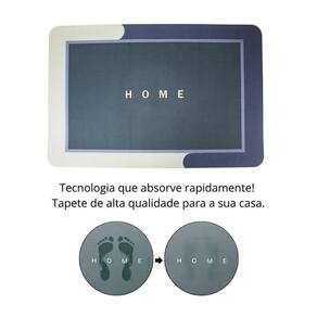 Perfeito para quem busca estilo, praticidade e funcionalidade no dia a dia, este tapete é ideal para ser colocado em portas e entradas de casas e apartamentos. Sua superfície é suave e macia ao toque, proporcionando conforto extra para quem gosta de caminhar descalço pela casa. Com material de secagem rápida que evita acúmulo de umidade, facilitando a limpeza e mantendo o tapete sempre seco e higiênico. Possui base antiderrapante que garante maior segurança e estabilidade no uso diário, prevenindo escorregões. A estampa em diferentes tons de azul com a palavra Home em branco no centro, é perfeita para ambientes com diferentes tipos de decoração. Prático para o dia a dia, ele pode ser limpo facilmente.