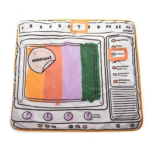 Se você estava buscando um tapete pro seu artista mirim, que faz arte dia sim e outro também, acaba de encontrar. O Tapete Bebê 12 Meses TV Programa do dia é o cenário perfeito para vários clicks divertidos com seu bebê. Para uma temporada de fotos incríveis e muita audiência nas redes sociais. E aqui o canal é brincar e registrar tudo numa tacada só, por isso criamos 2 placas de papel que podem ser usadas para sinalizar as marcações do tapete e para interação na foto. Vem ver tudo que essa TV tem de bom: