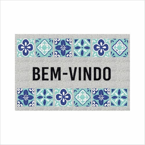 Tapete tipo Capacho Vinil com fibras entrelaçadas e costado emborrachado com arte pinta em tinta vinílica especial.