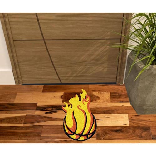 Tapete tipo Capacho Vinil com fibras entrelaçadas e costado emborrachado com arte pinta em tinta vinílica especial.