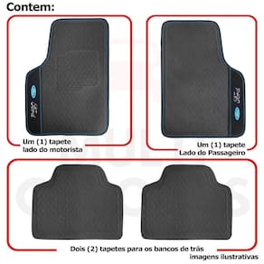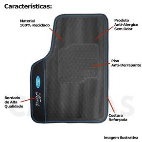 Tapete borracha ford fiesta escort focus ka ranger bordado com acabamento na cor preta, produzido com material altamente resistente, com belo bordado, este jogo de tapete protege o assoalho do veículo e pode ser lavado, pois ele é totalmente reciclável e ecológico, além das bases e superfícies antiderrapantes. Feito sob medida para o seu veículo. Jogo de tapetes para a linha ford com bordado. Características - 100% policloreto de vinila - anti-alérgico - sem odor - maior durabilidade - 100% reciclado e ecológico - - cor: preto fosco - marca: aladin