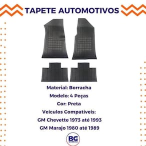 Tapete de Borracha GM Chevette 1973 até 1993 e Marajo 1980 até 1989 4 Peças- Carfloor -marca: Carfloor -código do Fabricante: D0210 -modelo: 4 Peças 02 Peças Dianteiras e 02 Peças Traseiras -material: Borracha -cor: Preto -jogo de tapete borracha