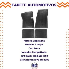 Tapete de Borracha GM Opala 1968 até 1992 Caravan 1975 até 1992 4 Peças- Carfloor -marca: Carfloor -código do Fabricante: D0250 -modelo: 4 Peças 02 Peças Dianteiras e 02 Peças Traseiras -material: Borracha -cor: Preto -jogo de tapete borracha