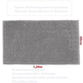 Tapete Buettner Microfibra Antiderrapante Chenille Greco 60x120m Prata Tapete para banheiro antiderrapante no tamanho 60cm x1,20m modelo Greco, com toda a qualidade e exclusividade da marca Buettner. Importado com toda qualidade vaidade pela própria Buettner, o tapete possui superfície em microfibra (100% Poliéster), dando uma ótima sensação ao pisar! Seu acabamento possui uma grande cobertura de microfibra, com o chenille todo conforme em uma única altura e espessura, dando muito conforto e maciez ao estar sobre ele e deixando o ambiente muito bem decorado. Tapete Buettner Microfibra Antiderrapante Chenille Greco 60x120m Prata