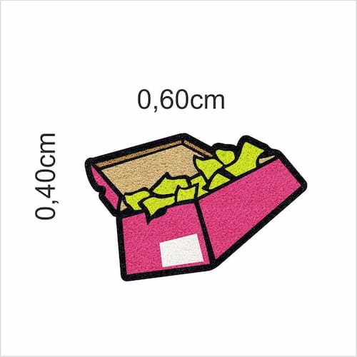 Tapete Capacho Vinil com fibras entrelaçadas e costado emborrachado com arte pinta em tinta vinílica especial.