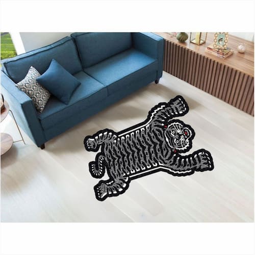 Tapete Capacho Animal Tigre Listrado no Formato 1,00X0,60 cm - Cor: Cinza