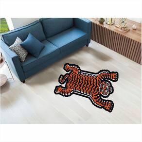Tapete Capacho Animal Tigre Listrado no Formato 1,00X0,60 cm - Cor: Laranja